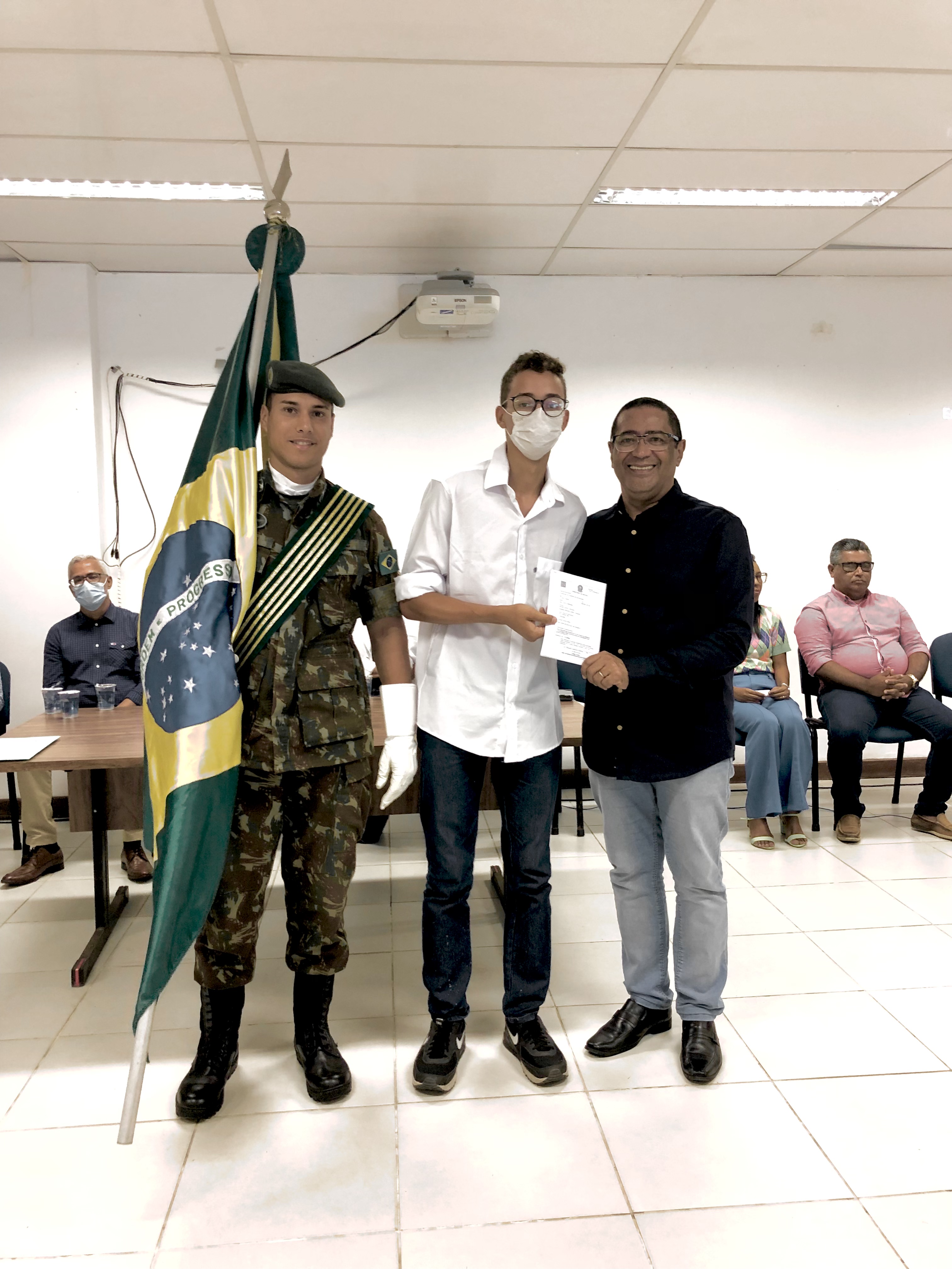 O auditório da Prefeitura de Dias d'Ávila sediou, nesta quinta-feira (15), mais um ato solene de Juramento à Bandeira, dos novos dispensados do Exército Brasileiro, em cumprimento ao estabelecido em agenda, junto ao Comando da 6ª Região Militar.