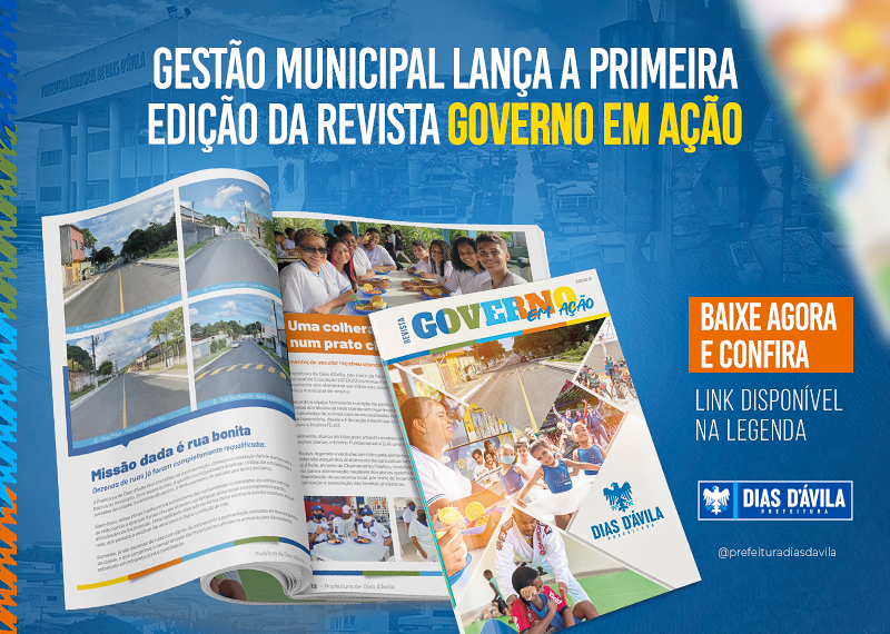 A Prefeitura Municipal de Dias d'Ávila acaba de lançar a primeira edição da revista "Governo em Ação". Um grande portfólio de obras e serviços que foram prestados à comunidade nesses dois anos de gestão municipal.