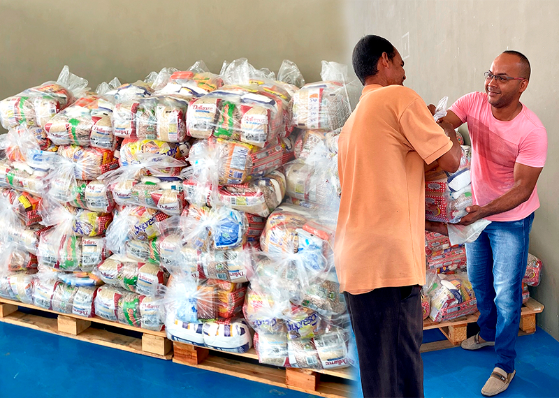 Vale destacar que as cestas são entregues periodicamente, e são compostas de arroz, feijão, farinha de mandioca, óleo de soja, açúcar, café, fubá, macarrão, proteína texturizada de soja, biscoito e leite em pó.