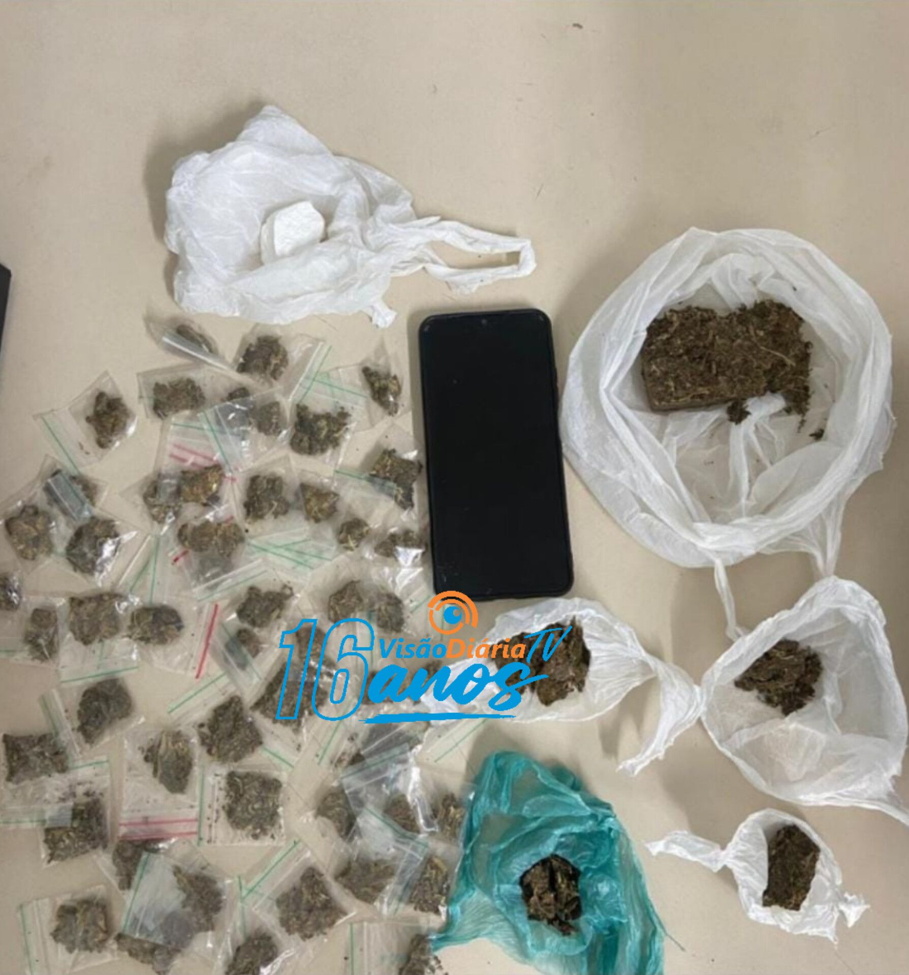 Os militares realizavam patrulhamento, quando se depararam com um indivíduo que, diante da presença dos agentes, abandonou uma sacola e correu. O suspeito foi alcançado e, dentro da sacola, foram encontrados 58 porções de maconha e uma pedra de cocaína.