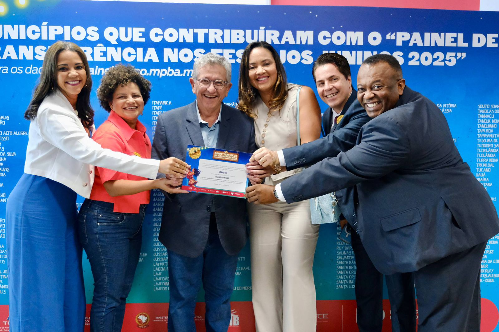 Festa boa na cidade é com transparência e responsabilidade. Sob esse emblema, Camaçari recebeu nesta terça-feira (10) o Selo de Transparência dos Festejos Juninos 2025, que reconhece o compromisso dos municípios baianos em assegurar clareza nos gastos e na organização dos festejos de São João. A iniciativa é promovida Ministério Público da Bahia (MP-BA) e os Tribunais de Contas do Estado (TCE) e dos Municípios (TCM), por meio do Painel da Transparência dos Festejos Juninos.