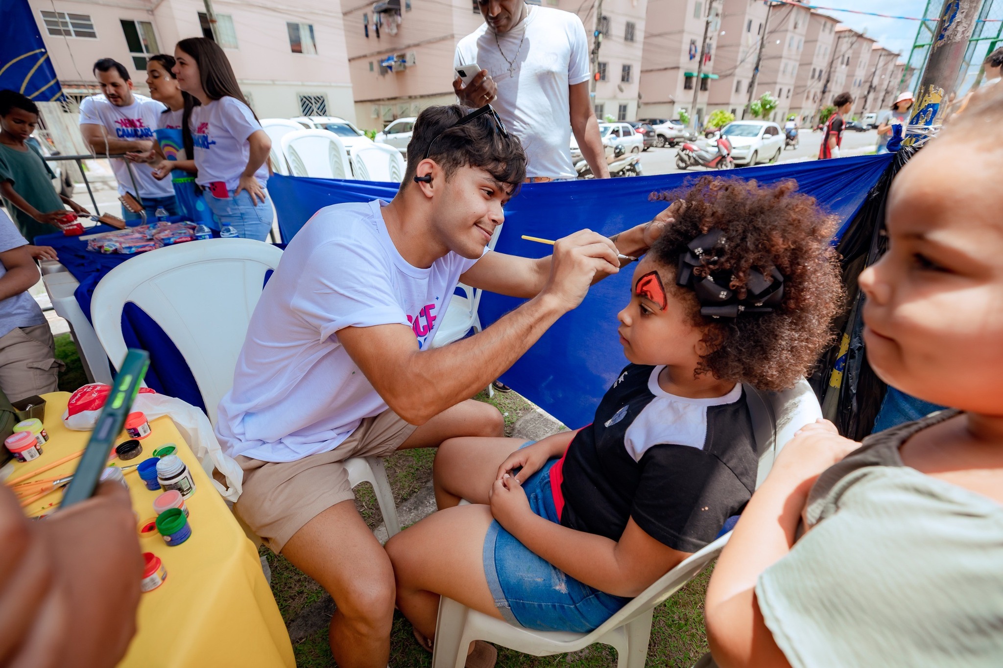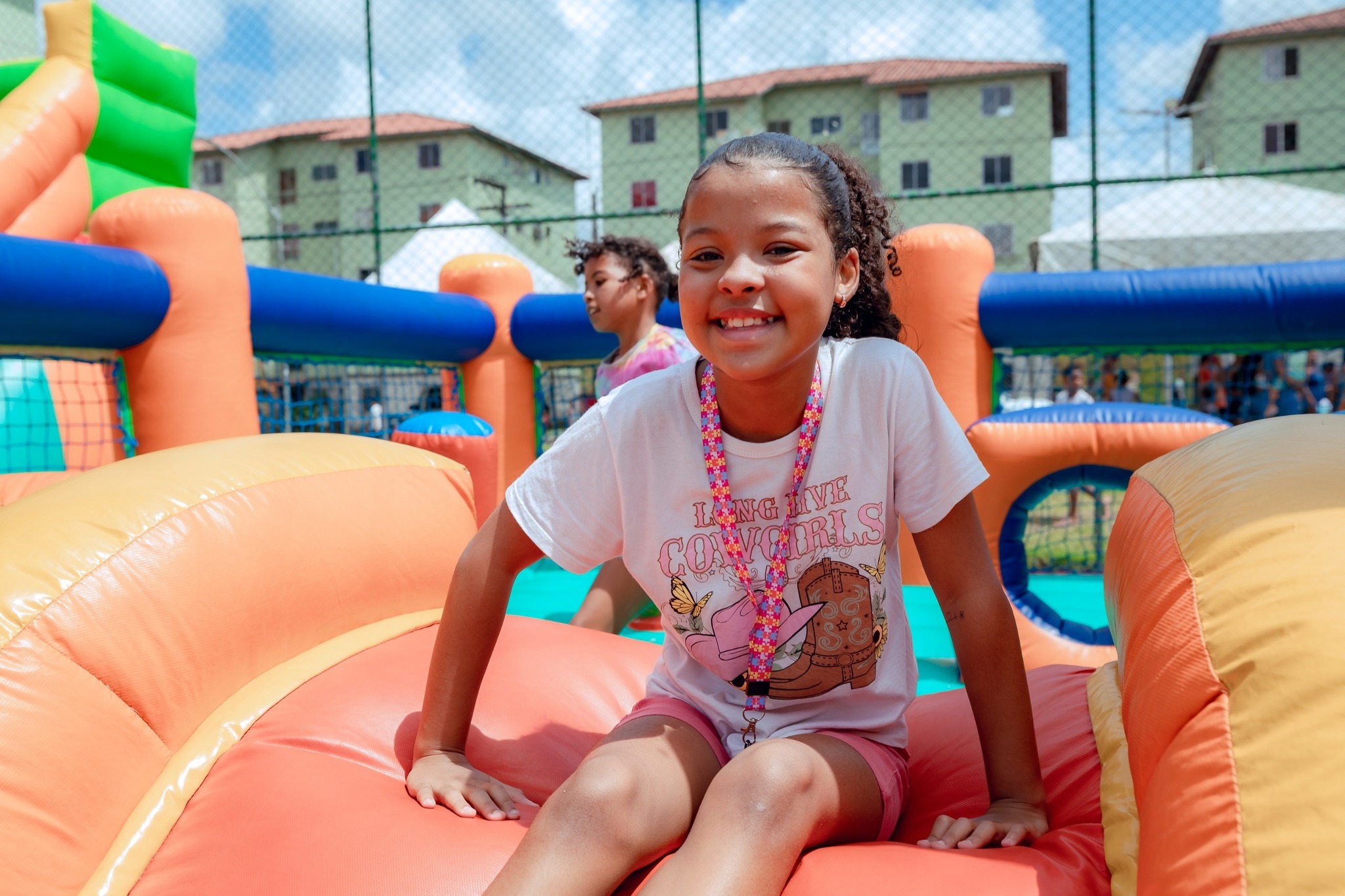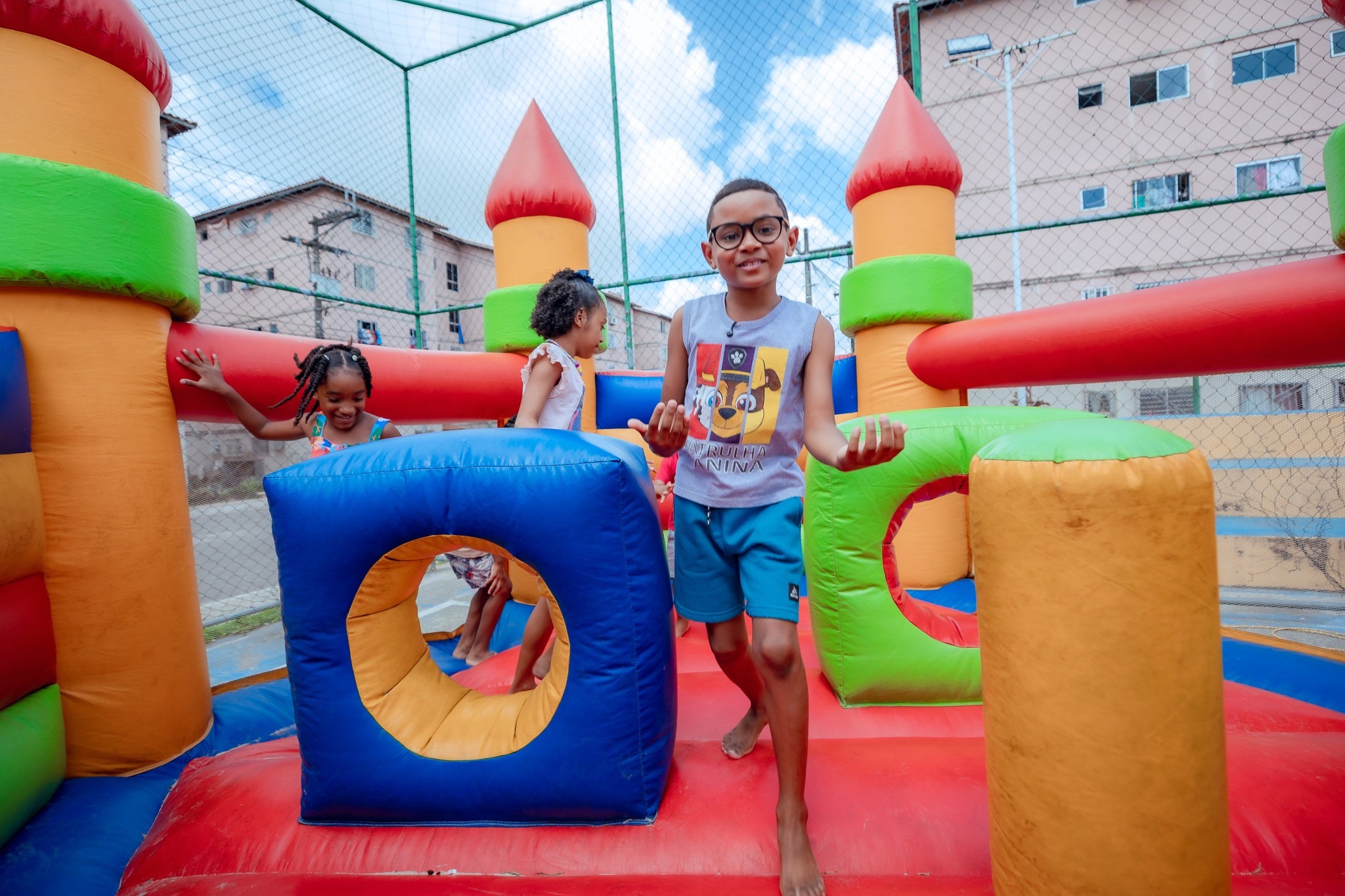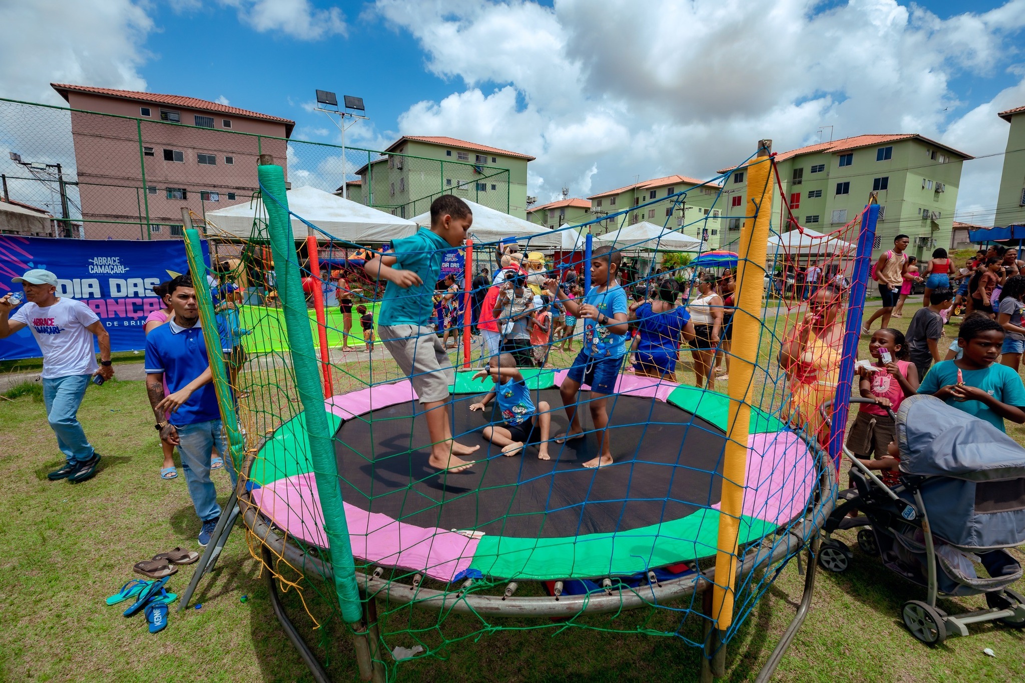 Sol, calor humano e um abraço de direitos e cuidados. A alegria e a diversão tomaram conta do condomínio Alha II, no Jardim Limoeiro, com a realização da Festa do Dia das Crianças do Abrace Camaçari. Com o tema “Direito de Brincar”, o projeto levou doces, brinquedos e brincadeiras para a comunidade neste sábado (25). Realizado com o apoio de voluntários e apoiadores, o evento desse ano traz visibilidade social para crianças e adolescentes, defendendo um direito básico previsto no Estatuto da Criança e do Adolescente (ECA), onde reforça, que brincar é um direito essencial para todas as crianças.