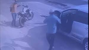 Uma câmera de segurança flagrou o momento do crime. As imagens mostram que Fabrício da Silva saiu do imóvel com uma mochila nas costas, se aproximou de uma motocicleta e foi abordado pelo suspeito. A vítima ainda faz um sinal de que estava desarmada, mas foi baleada.