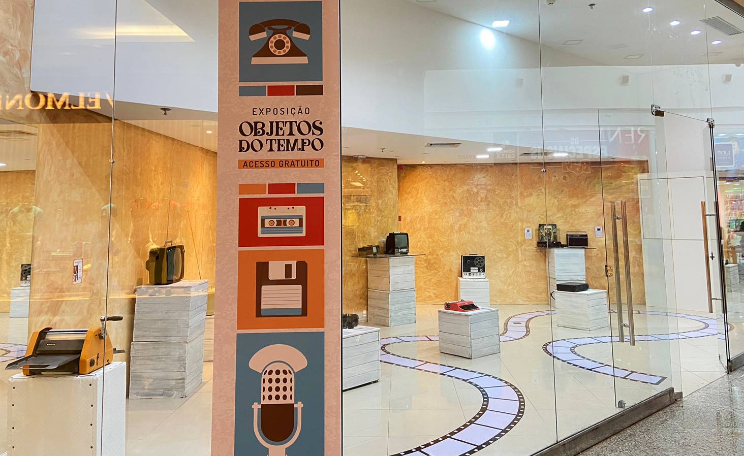 A mostra, com a curadoria do produtor cultural e artesão Deo Senna e da pesquisadora Selma Solange, está no piso L1, próximo à loja Renner. Durante a exposição, os visitantes podem conferir equipamentos de diferentes fabricantes, modelos e épocas, como câmeras filmadoras e TVs analógicas, aparelho telefônico de discagem, rádios AM e FM, vitrola, máquina de datilografia e mimeógrafo, um instrumento usado, principalmente em escolas, para fazer cópias de papel escrito em grande escala. Para facilitar a identificação, todos itens possuem uma etiqueta com um breve resumo sobre a peça, a exemplo do ano de fabricação, modelo, fabricante e funcionalidade.