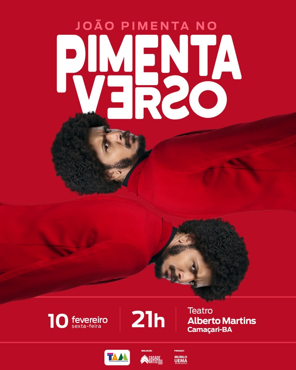 Nesta sexta-feira (10/2), o comediante baiano João Pimenta apresenta às 21h, no Teatro Alberto Martins, o seu primeiro show solo de stand up comedy, "Pimentaverso". Reunindo suas referências, vivência de um negro periférico e suas histórias mais mirabolantes, na apresentação, João Pimenta passeia pelo passado, presente e até um vislumbre do futuro, dando ao público um gostinho de todo caos, aleatoriedade e causos inusitados que formam sua vida. O valor dos ingressos variam entre R$ 40 e R$ 90, podendo ser adquiridos através do Sympla.
