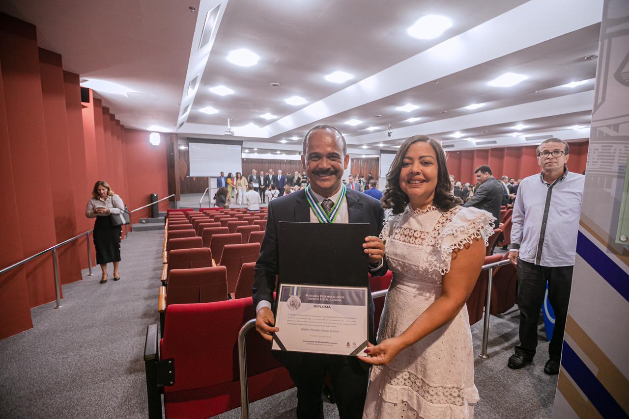 Durante o momento solene, quando recebeu a condecoração das mãos do Desembargador José Edivaldo Rocha Rotondamo, o prefeito Elinaldo, que estava acompanhado da primeira-dama, Ivana Paula, expressou gratidão e ressaltou, "o sentimento é de felicidade. Vim para representar o corpo técnico da prefeitura e sem eles não conseguiríamos estar aqui. Temos uma parceria com o TJ, para quem cedemos servidores e investimos em tecnologia para tribunais e cartórios. É por causa desses fatores que o município recebe esta honraria, que é muito importante para nossa cidade".