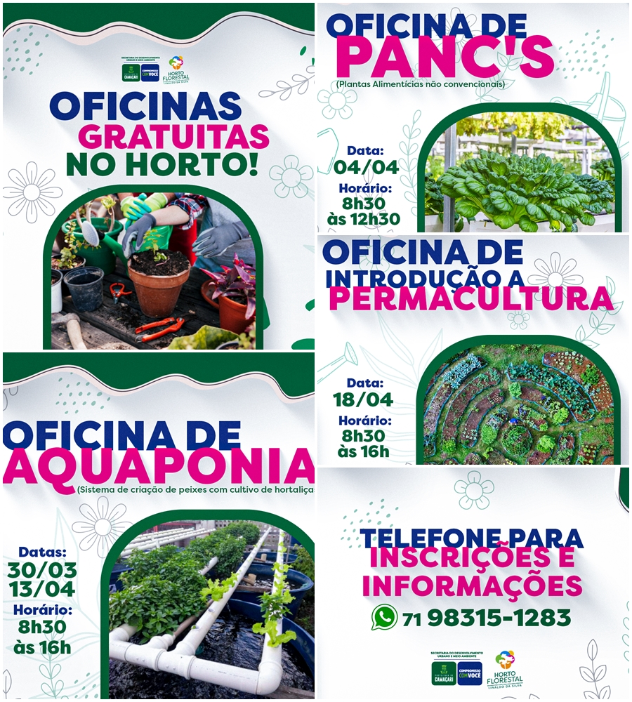 De acordo com a coordenadoria, as oficinas são gratuitas e com vagas limitadas. Os interessados em participar das atividades, podem se inscrever através do número (71) 98315-128, por meio de mensagem via WhatsApp.