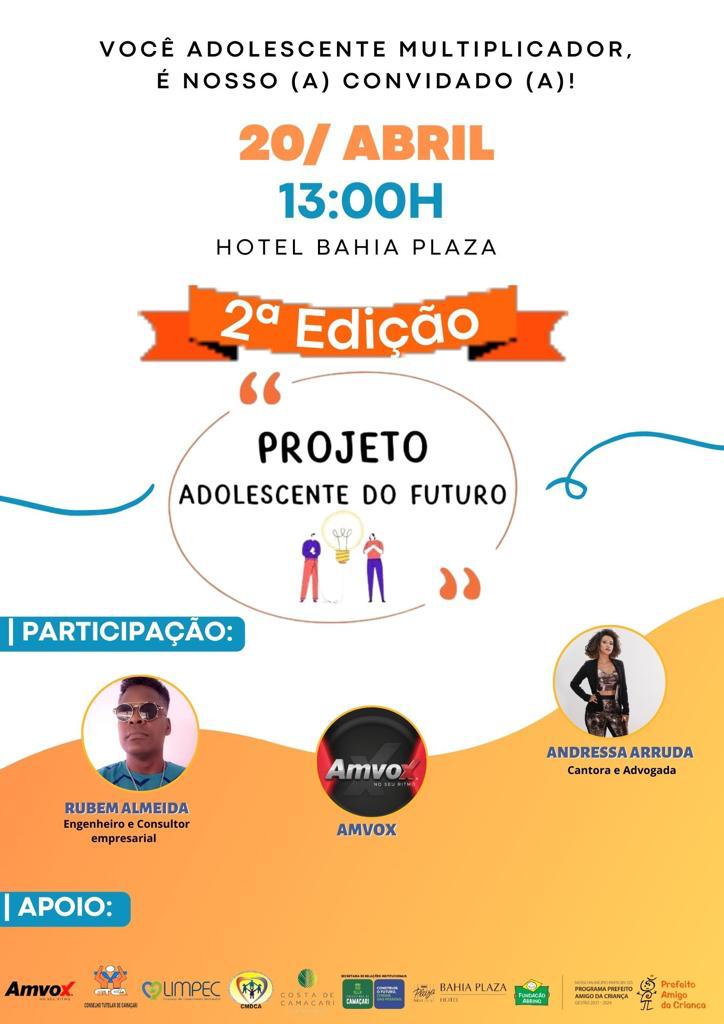 O Grupo de Trabalho Coordenador (GTC) da 7ª edição do Programa Prefeito Amigo da Criança (PPAC) dá início à 2ª edição do projeto Adolescente do Futuro. Economia Criativa é a temática de trabalho da primeira formação, que acontece nesta quinta-feira (20/4), às 13h, no Bahia Plaza Hotel, em Busca Vida.
