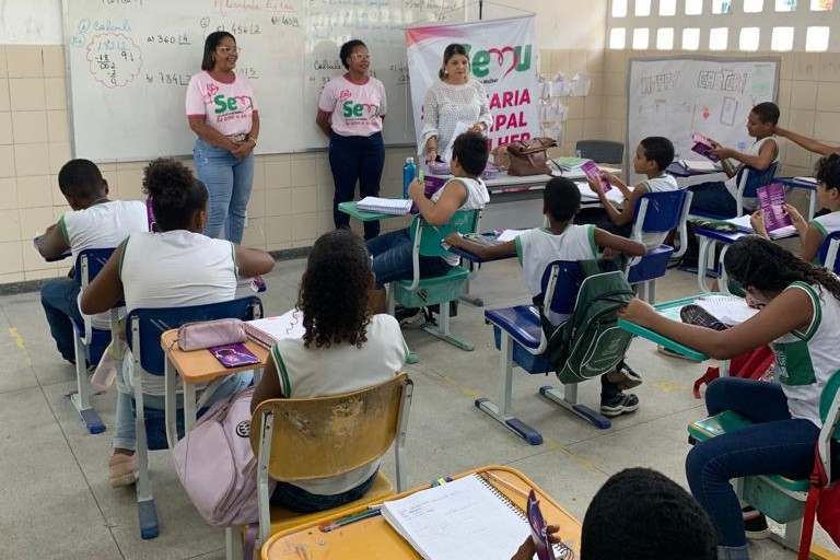 Professores e estudantes do Centro Educacional Tancredo Neves, em Jauá, foram contemplados com a 18ª edição do Semu nas Escolas - Todos Pelo Fim da Violência Contra a Mulher. Com o objetivo de levar informações que possibilitem romper o ciclo da violência, a equipe técnica da Secretaria da Mulher (Semu), realizou palestras e dinâmicas sobre os tipos de violência doméstica.