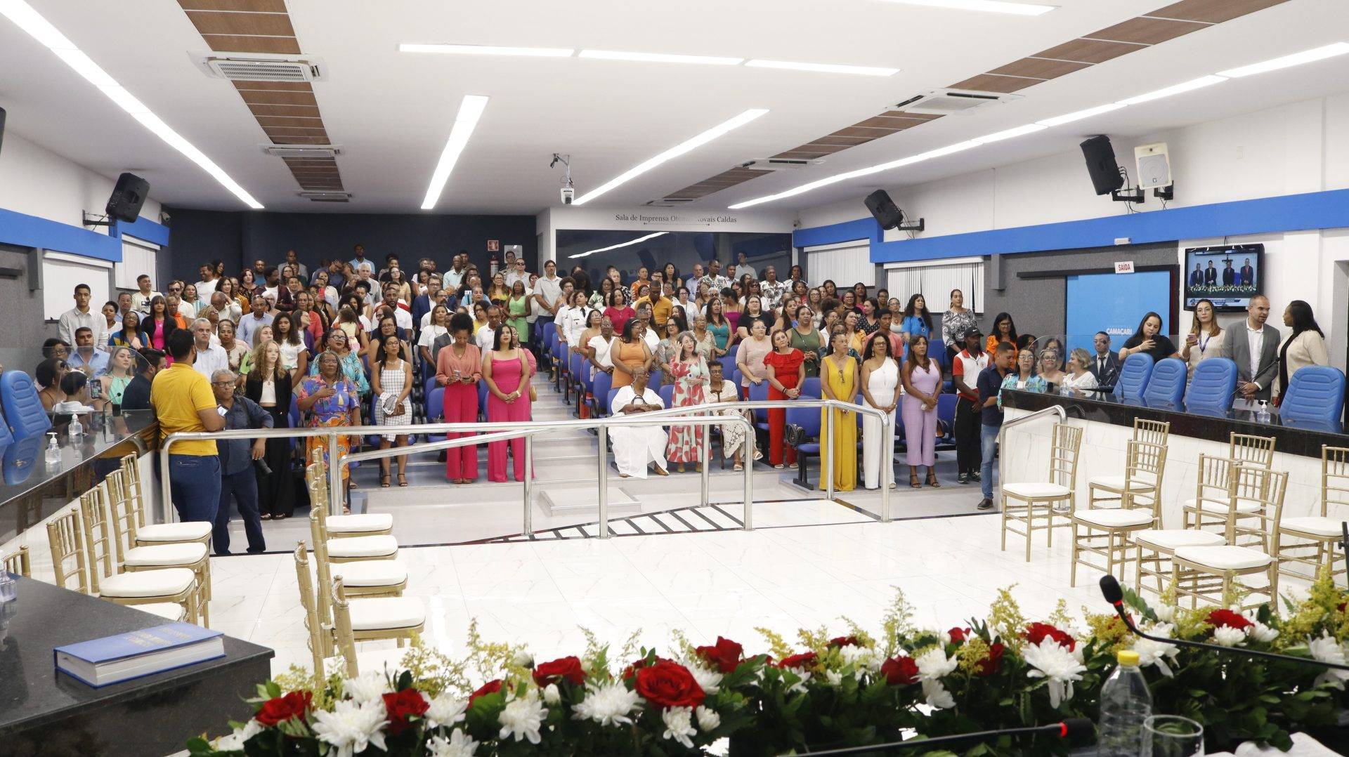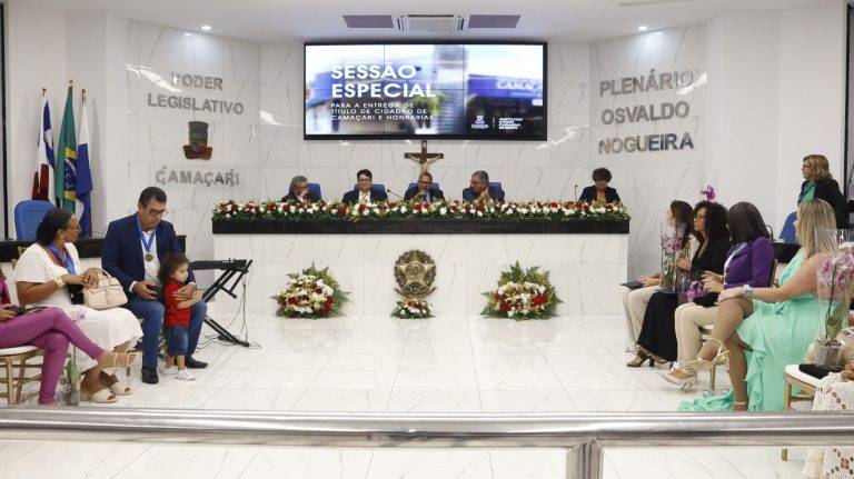 Com plenário lotado, a Câmara Municipal de Camaçari, atendendo ao Requerimento Nº 31/2023, de autoria dos vereadores Dentinho do Sindicato (PT), Tagner Cerqueira (PT) e Vavau (PSB), realizou uma Sessão Especial, na tarde desta sexta-feira (24/11), para entregar 19 honrarias. Foram homenageadas com as Medalhas Irmã Dulce, Desembargador Montenegro e Marquês de Abrantes, o Prêmio Mulher Destaque, a Comenda Maria Quitéria e o Título de Cidadão Camaçariense, personalidades que contribuem para o desenvolvimento do município.