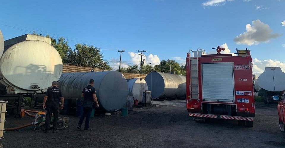 Segundo a PC, no local, foram apreendidos dez caminhões tanques e mais três tanques fixos, com 595 mil litros de combustíveis, entre diesel S10, gasolina e etanol, avaliados em R$ 3,3 milhões.
