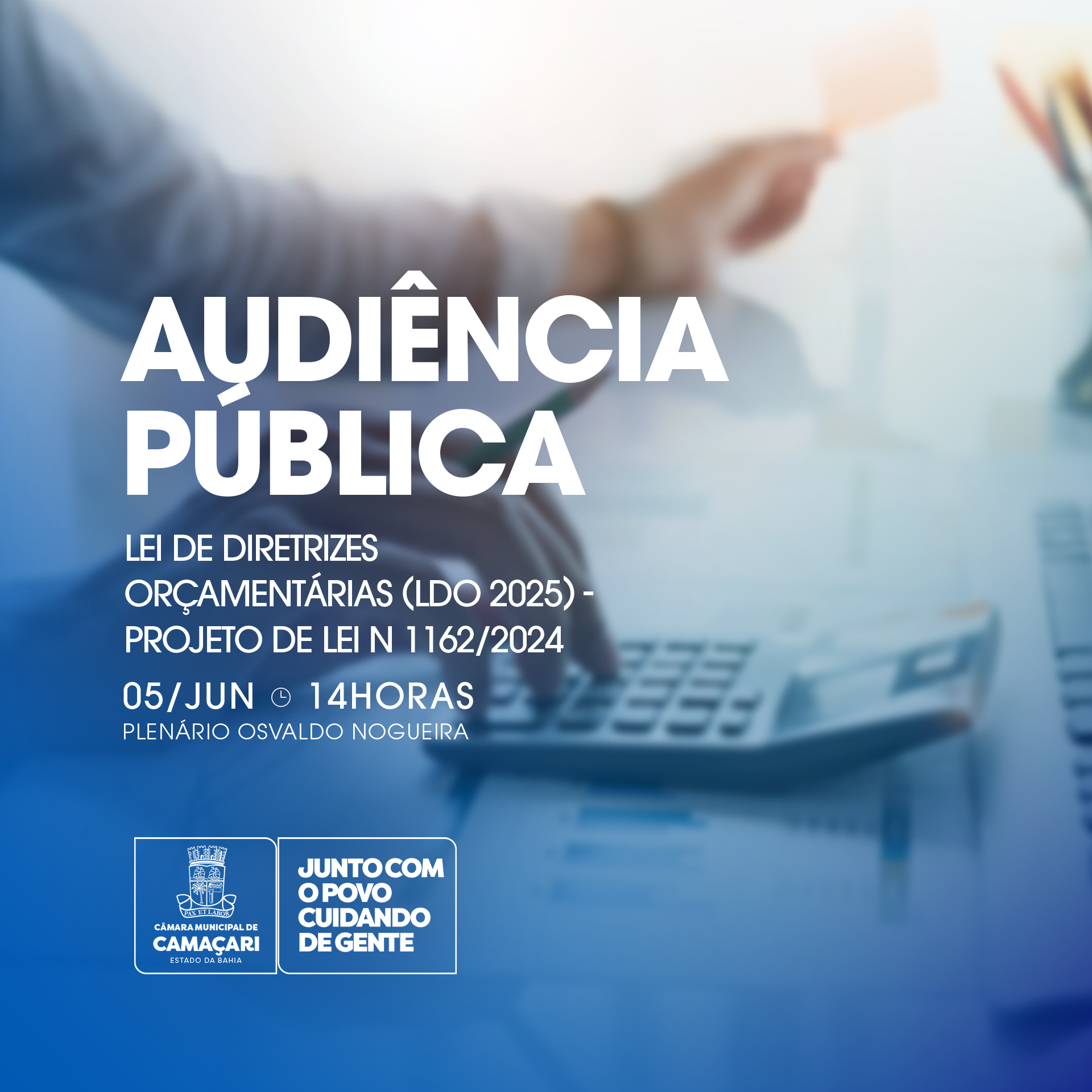 Na próxima quarta-feira (05/06), a partir das 14h, no Plenário da Câmara Municipal, acontecerá Audiência Pública para apresentação e debate da Lei de Diretrizes Orçamentárias (LDO) 2025, com objetivo de apresentar aos cidadãos e aos vereadores detalhes da peça orçamentária. A realização da audiência pública é obrigatória, como determina a Lei de Responsabilidade Fiscal, e será conduzida pelo presidente da Comissão de Finanças e Orçamento, vereador Niltinho (PRD).