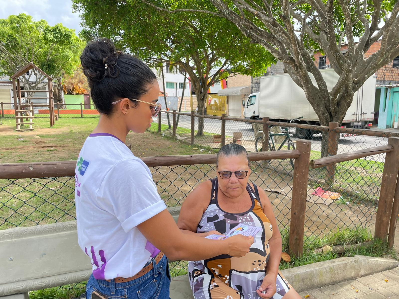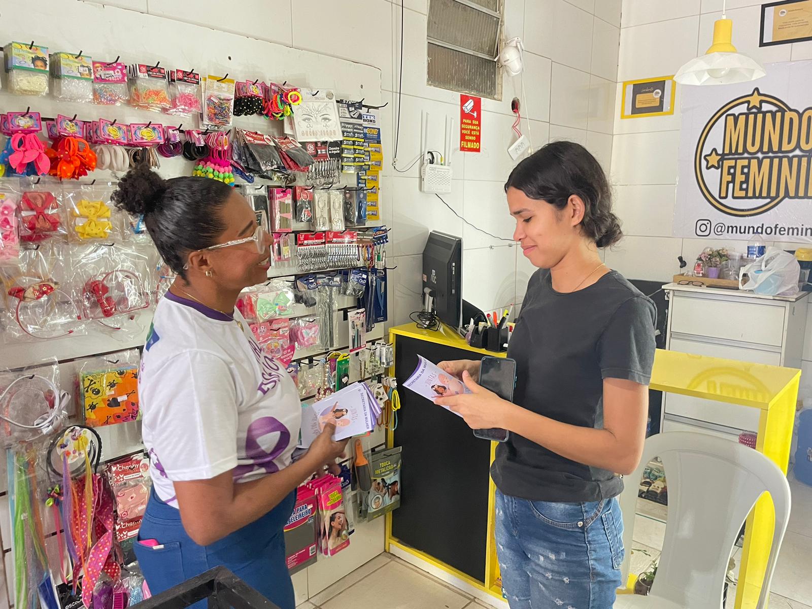 Realizada pela equipe técnica da pasta, a ação distribuiu material educativo contendo informações sobre os tipos de violência (física, moral, sexual e patrimonial), os direitos das mulheres que vivem essa situação, além dos serviços especializados para acolhimento, orientação e denúncia.