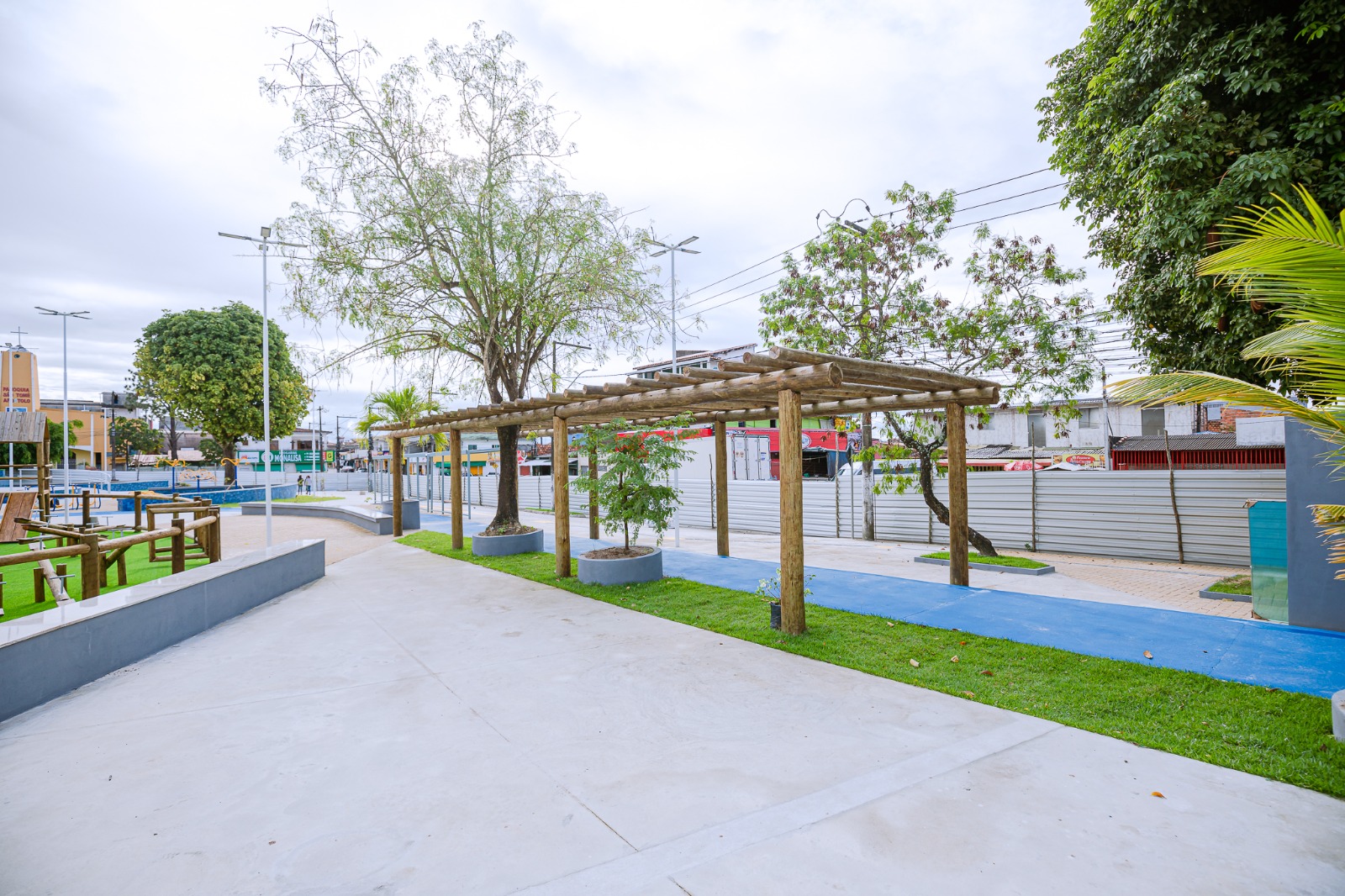 A fim de garantir um ambiente agradável para passeios em família, bem como encontros com amigos, o projeto de requalificação da praça inclui, também, a criação de espaços de lazer e convivência. Fazem parte da estrutura pergolados, 13 quiosques, praça de alimentação, academia ao ar livre, parque infantil e anfiteatro descoberto para eventos culturais. Elementos fundamentais para elevar a qualidade de vida da população.
