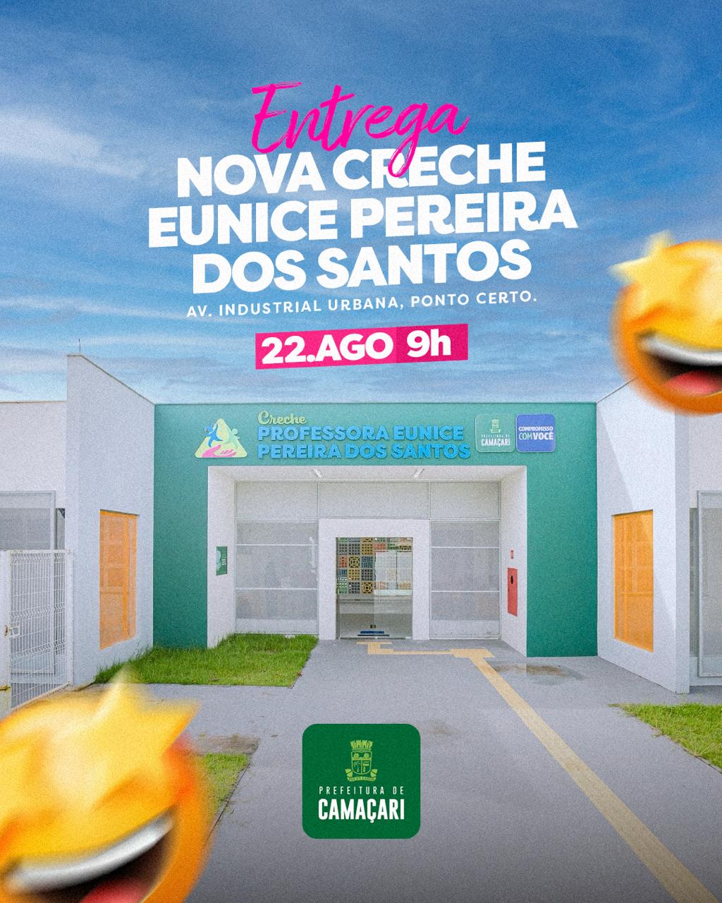 Neste mês de agosto, em que se celebra o Dia do Estudante, a Prefeitura de Camaçari dá mais um passo significativo no que diz respeito ao fortalecimento da educação infantil, com a inauguração da Creche Municipal Professora Eunice Pereira dos Santos. Localizada na Avenida Industrial Urbana, no bairro Ponto Certo, a nova unidade será entregue nesta quinta-feira (22/8), às 9h, em cerimônia que contará com a presença do prefeito Elinaldo Araújo, autoridades municipais e a comunidade local.