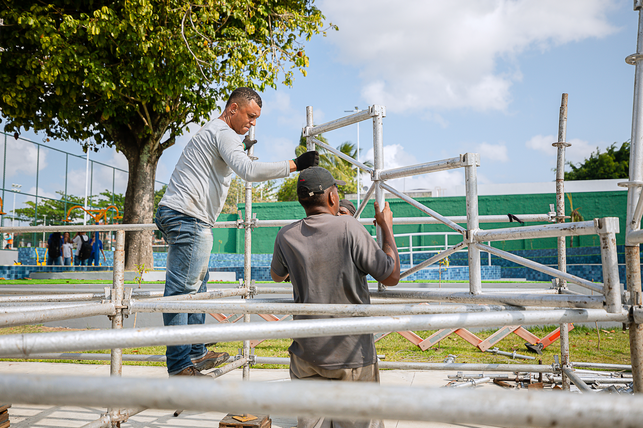 Nesta perspectiva, no sábado (7/9), acontecem as festividades em comemoração à Independência do Brasil nos bairros Gleba E e na localidade de Parafuso, e a Prefeitura de Camaçari, por meio da Coordenação de Eventos, setor vinculado à Secretaria de Governo (Segov), trabalha a todo vapor na montagem da estrutura, a fim de garantir que os espaços estejam com todos os itens necessários para a realização de um grande evento em ambos os locais.
