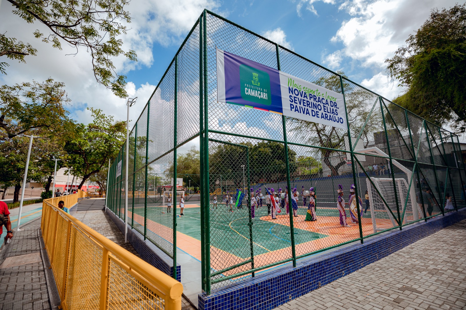 Já a Praça Dr. Severino, recebeu a adição de parque infantil, pergolados, academia de saúde ao ar livre, pavimentação com piso intertravado e um dedicado paisagismo. Além disso, foram instalados guarda-corpos, boxes comerciais padronizados, e requalificação da pista de skate e da quadra poliesportiva, criando espaços funcionais e acessíveis para pessoas de todas as idades.