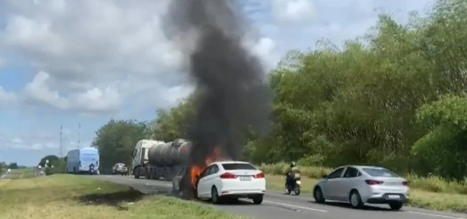Ambos carros ficaram completamente destruídos após pegarem fogo na pista. A Polícia Rodoviária Federal (PRF) informa que os veículos já foram retirados da pista e não houve vítimas. Ainda não há informações sobre o que ocasionou o acidente.