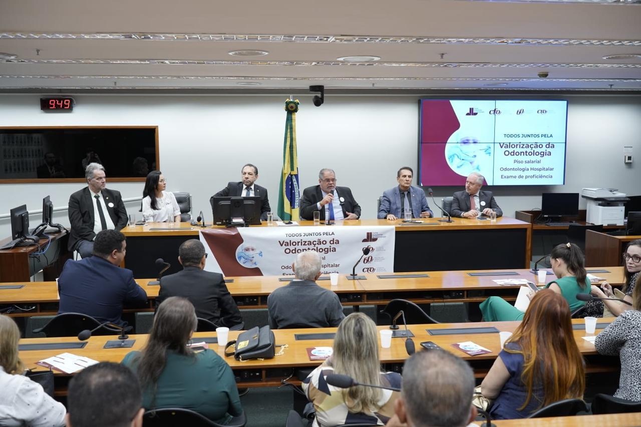 A sessão que foi presidida pelo presidente do Conselho Federal de Odontologia (CFO), Dr. Juliano do Vale e aconteceu nessa terça-feira (26), contou com a presença do deputado federal Carlos Gaguim (TO), presidente da Frente Parlamentar em Defesa da Odontologia, e do deputado e cirurgião-dentista Tadeu Oliveira (CE), além de representantes de vários movimentos ligados a Odontologia.