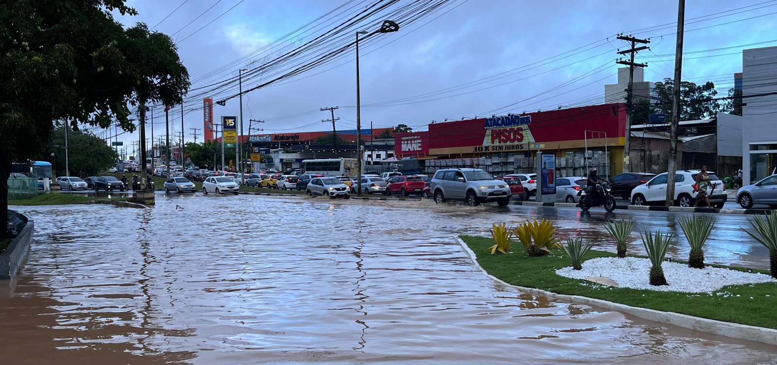 Um alagamento foi registrado na tarde deste sábado (7) e causa lentidão no tráfego da Estrada do Coco, em Lauro de Freitas, na região Metropolitana de Salvador. Além do trânsito lento, imagens mostram pedestres ilhados com dificuldade para atravessar por conta da água.