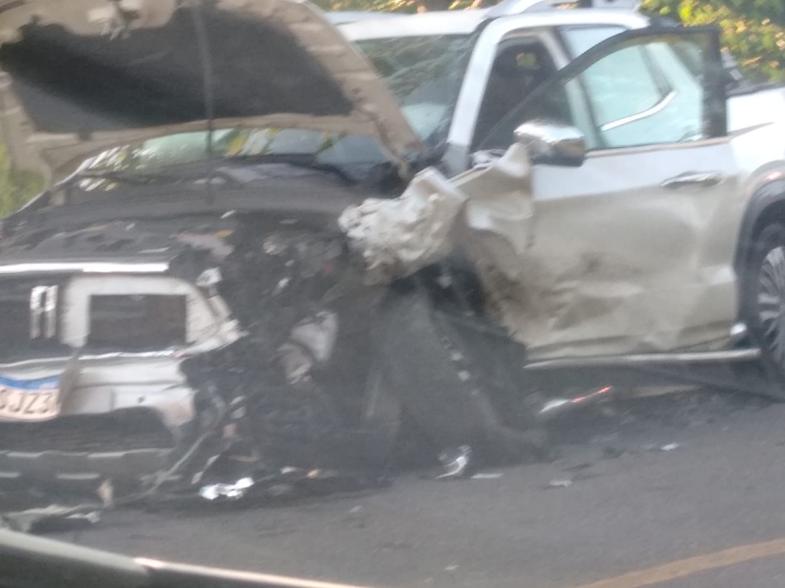 Equipes do Serviço de Atendimento Móvel de Urgência (Samu) e militares do Corpo de Bombeiros e da Polícia Rodoviária Estadual (PRE) estão no local, e parte da pista está interditada.