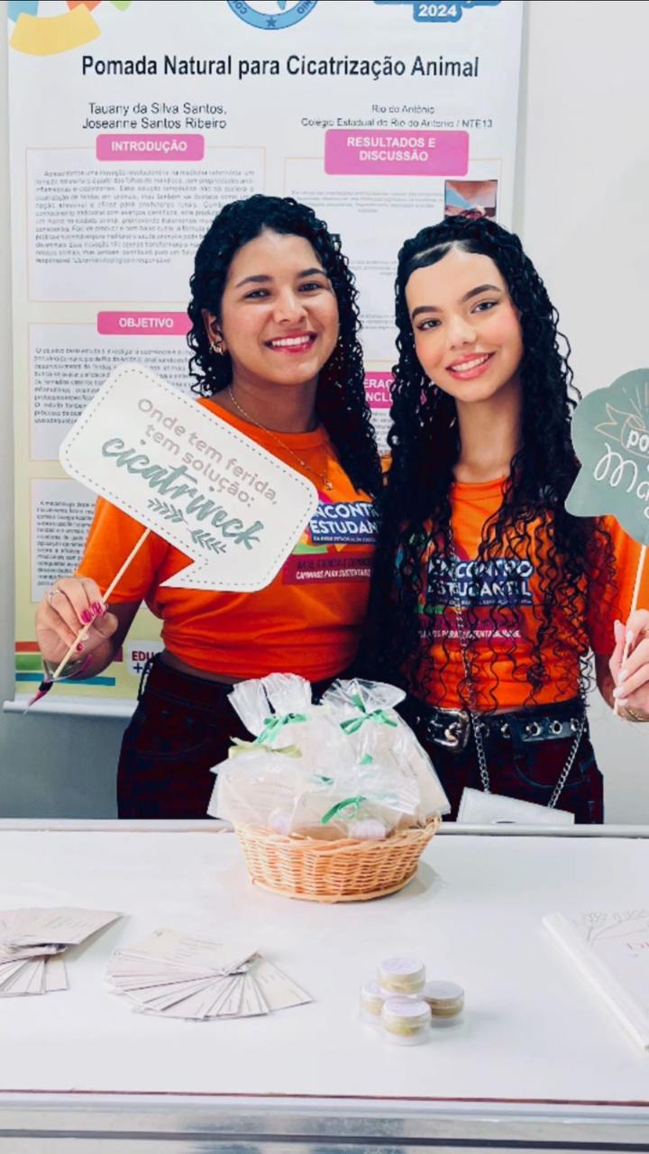 No município de Rio do Antônio, pertencente ao Território de Identidade do Sertão Produtivo (NTE 13), as estudantes Tauany da Silva Santos e Joseanne Santos Ribeiro, ambas de 16 anos, do Colégio Estadual de Tempo Integral de Rio do Antônio, deram vida ao projeto "Cicatriveck" -- uma pomada cicatrizante 100% natural feita a partir da folha de mandioca. Movidas pela necessidade de oferecer uma solução acessível aos pequenos criadores da região, elas reuniram ciência, sustentabilidade e saberes tradicionais para acelerar a cicatrização de feridas em animais e reduzir o uso de antibióticos sintéticos.