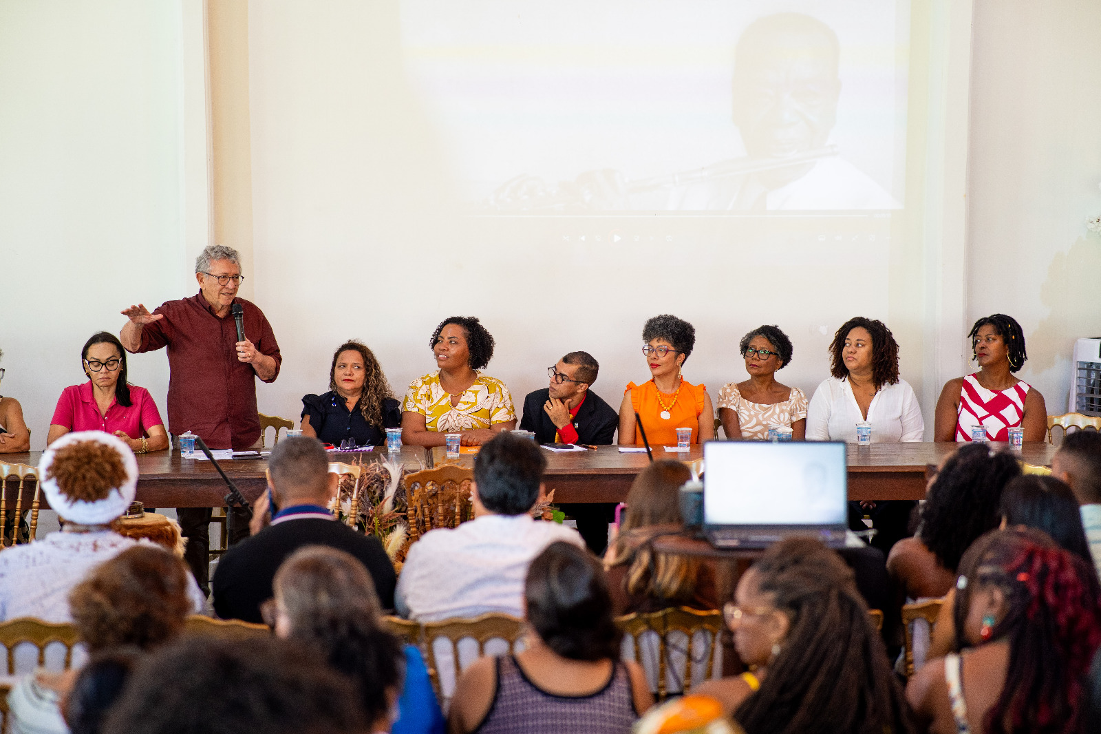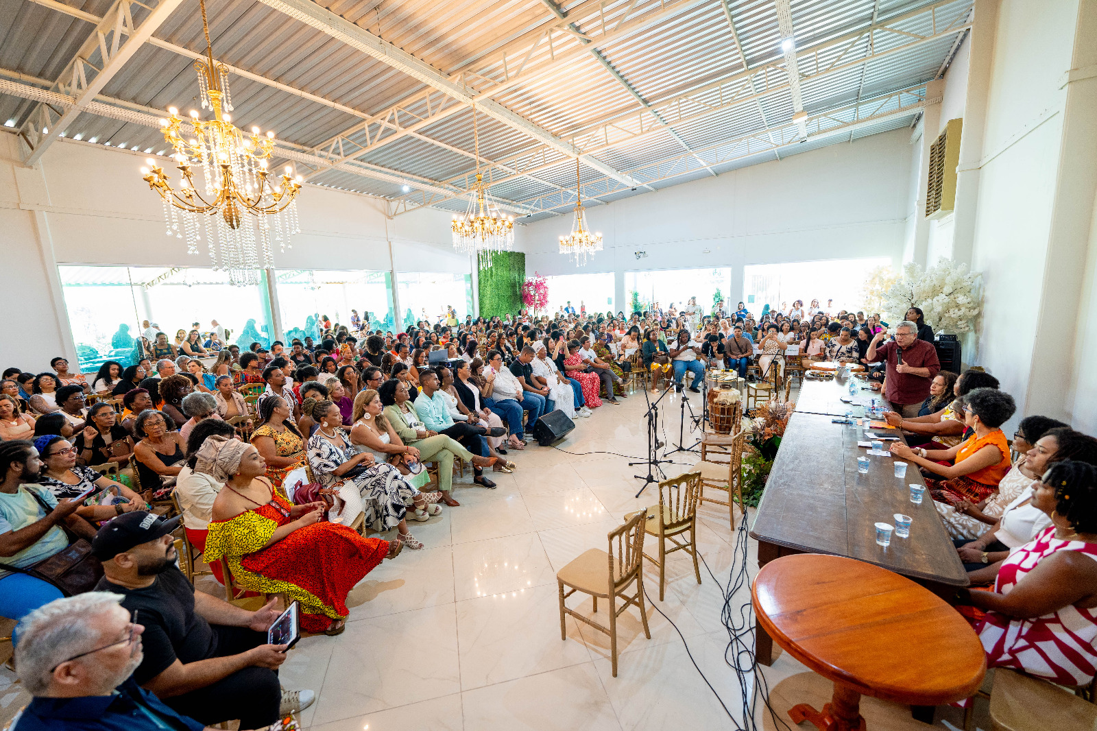 O prefeito Luiz Caetano destacou o alcance formativo da iniciativa. "Tem muito tempo que não participo de um encontro como esse. Olha o alcance desse momento, de cada profissional que está aqui. Nós temos que respeitar a inteligência de cada um, de cada uma, de forma igualitária. Não tenho dúvidas que saímos daqui hoje fortalecidos para enfrentar essa batalha do racismo. Vamos fazer a transformação", ponderou.