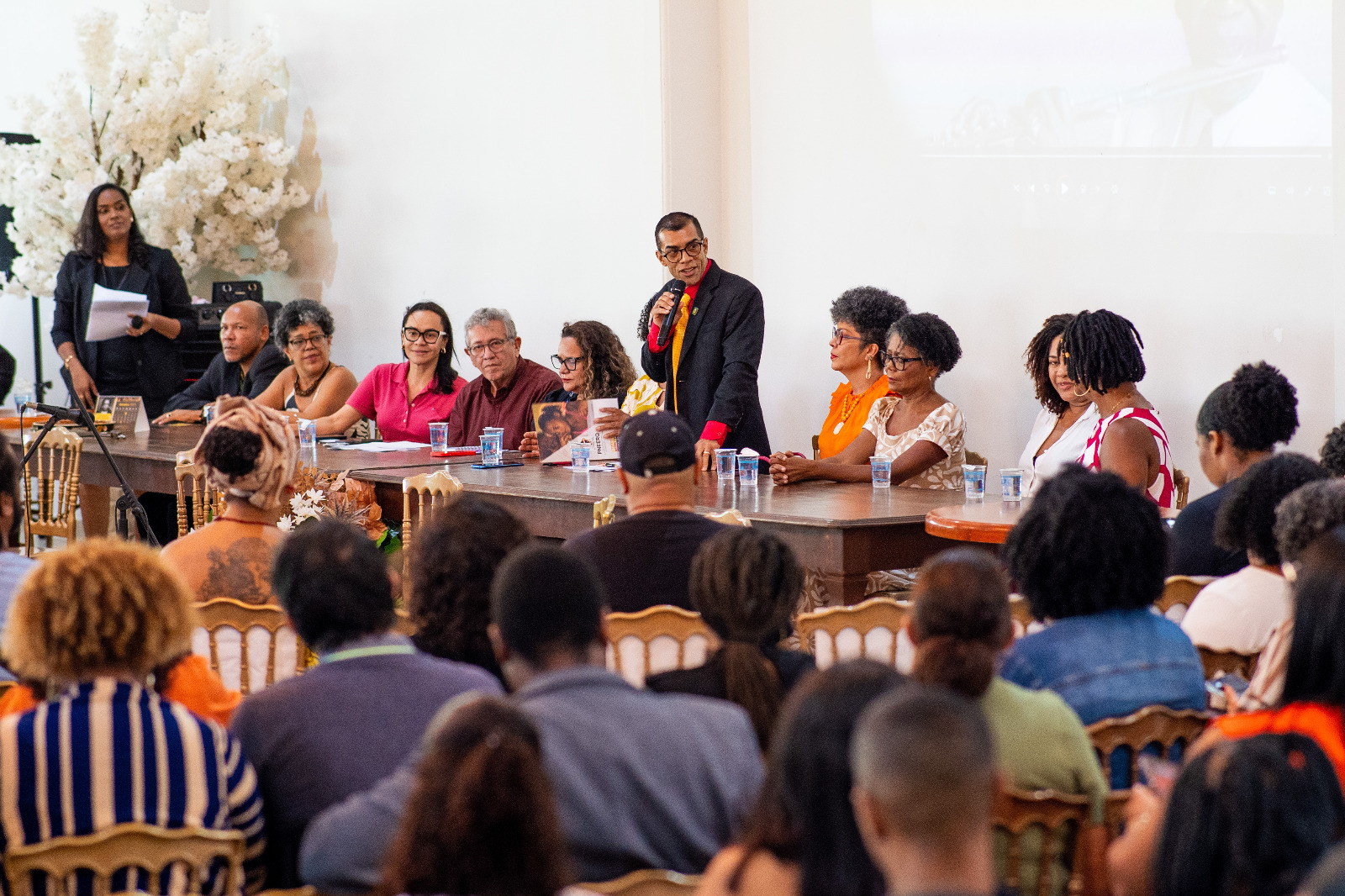 Ainda estiveram presentes na cerimônia a secretária de Promoção da Igualdade Racial da Bahia (Sepromi), Ângela Guimarães; a diretora pedagógica da Seduc de Camaçari, professora Alexandra Pereira Silva; o diretor em exercício do Campus dos Malês, professor Pedro Acosta Leyva; a coordenadora do Curso de Educação para as Relações Étnico-raciais, professora Carine Curinga de Matos; além de vereadores e autoridades municipais.