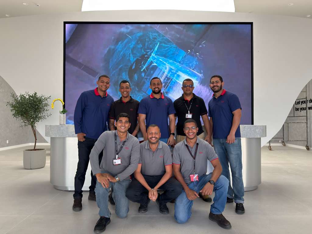 Para Lucas Santos de Jesus, que chegou há poucos meses à empresa, o sentimento é de entusiasmo: “Foi um grande aprendizado conhecer componentes que não tínhamos visto aqui no Brasil. Isso agregou muito à minha carreira profissional. Agora, vamos com ainda mais vontade de aprender. Na primeira viagem, minha maior dificuldade foi andar de avião, porque nunca tinha viajado. Agora já estou mais tranquilo (risos).”