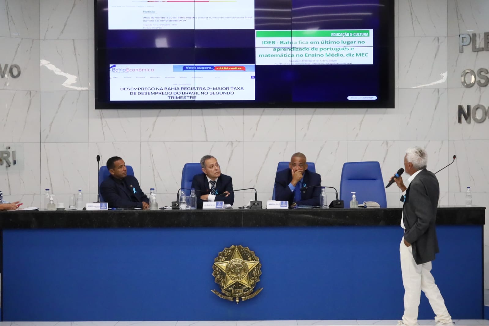 O "Novembro Azul" é uma campanha que foi originada na Austrália em 1999, e que começou a ser difundida no Brasil a partir do ano de 2011, cujo objetivo é alertar e conscientizar os homens sobre a importância do diagnóstico precoce do câncer de próstata, este que é o segundo mais comum na população masculina. E para fortalecer esse movimento, a Câmara Municipal de Camaçari realizou, na manhã desta sexta-feira (14/11), Sessão Especial sobre esta campanha que hoje já alcança todo o país. A atividade foi solicitada pelos vereadores Dr. Elias Natan (PSDB), que também é o presidente da Comissão de Saúde (CS) da Casa, e pelo vereador Manoel Filho (PL), que dividiram a Mesa com o vereador Maurício Qualidade (União), atual relator do colegiado.