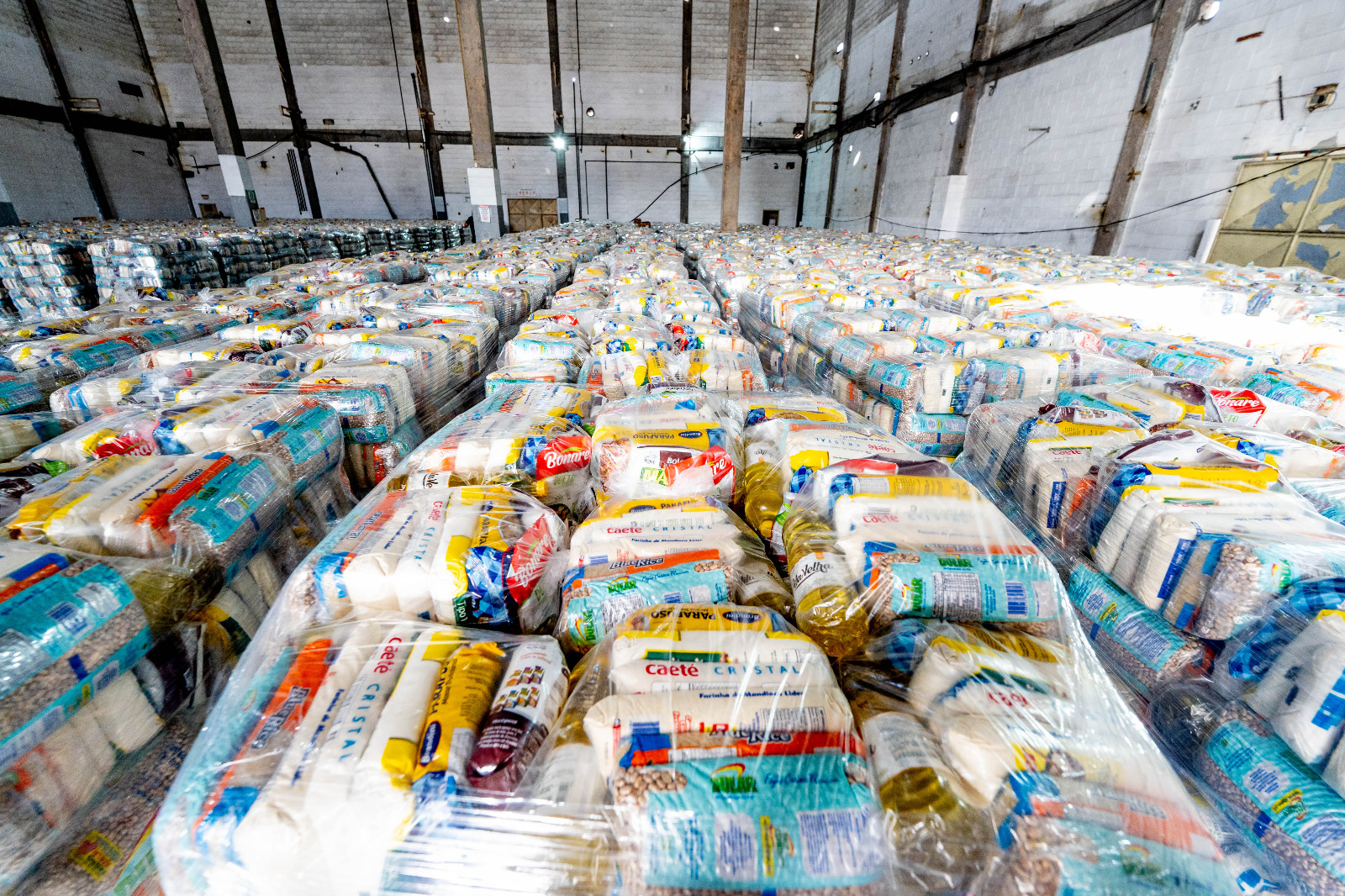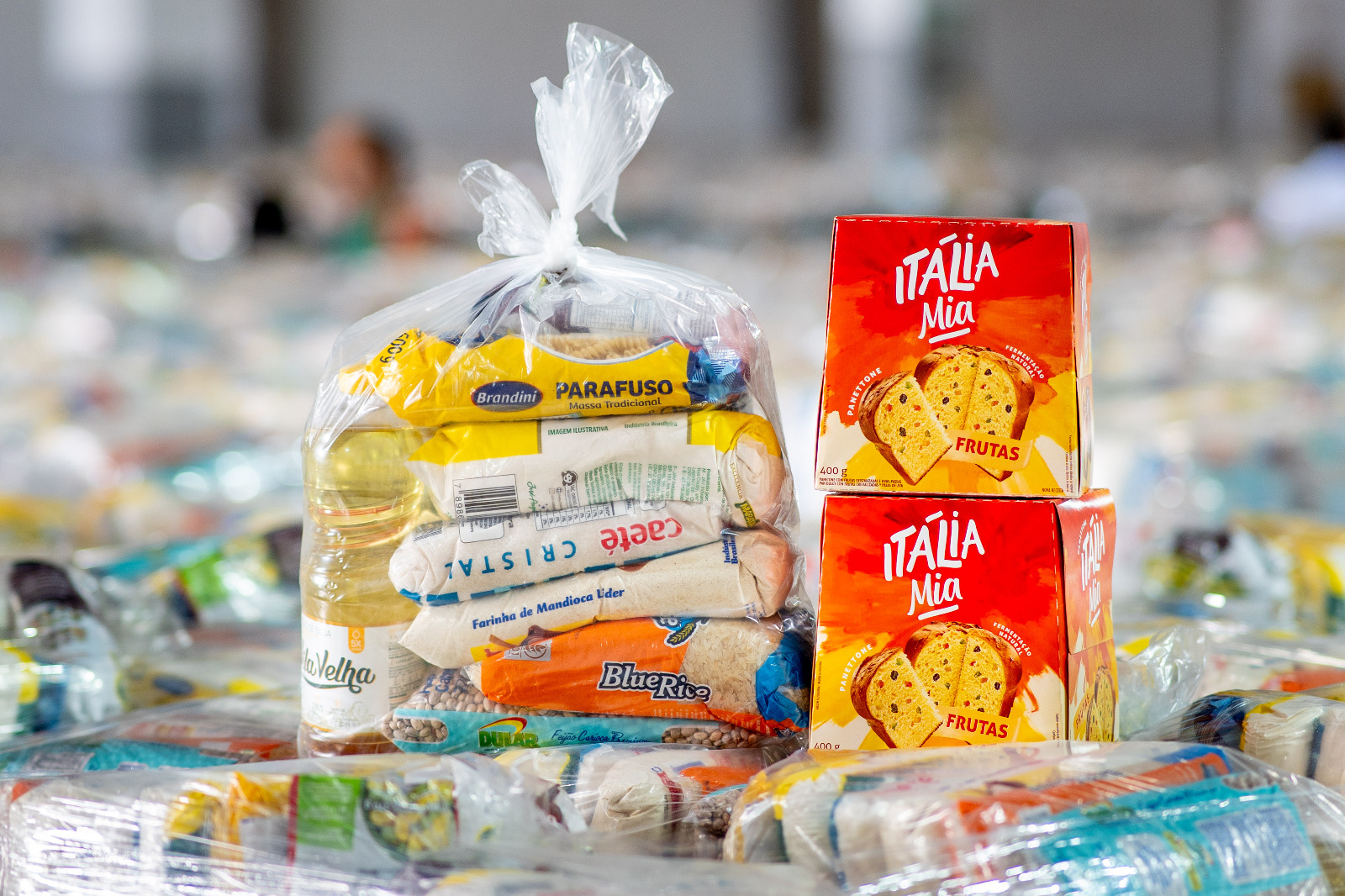 Cada cesta é composta por itens essenciais, como arroz, feijão carioca, macarrão tipo parafuso, farinha de mandioca, açúcar, óleo de soja, dueto de milho verde e ervilha produzidos a partir de grãos selecionados e inteiros, além de produtos típicos do período natalino, garantindo uma ceia mais digna e completa.