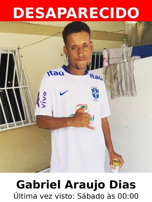 Gabriel Araújo Dias, de 24 anos, está desaparecido desde o último sábado (14).